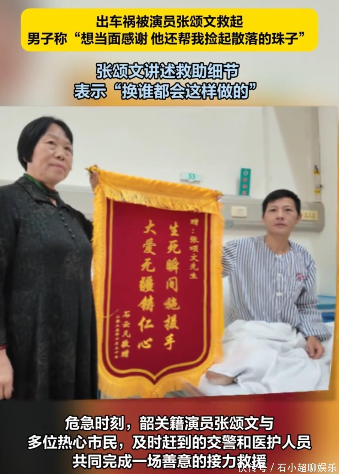 获救后的石先生得知施救者身份后,特意定制了一面写有"危难时刻施援手,艺术人生见真情"的锦旗,亲自送到张颂文手中表达自己的谢意。这起事件不仅展现了张颂文作为公众人物的社会责任感,更让人们看到,在现实生活中,这位"强哥"扮演者始终秉持着善良与担当的本色。